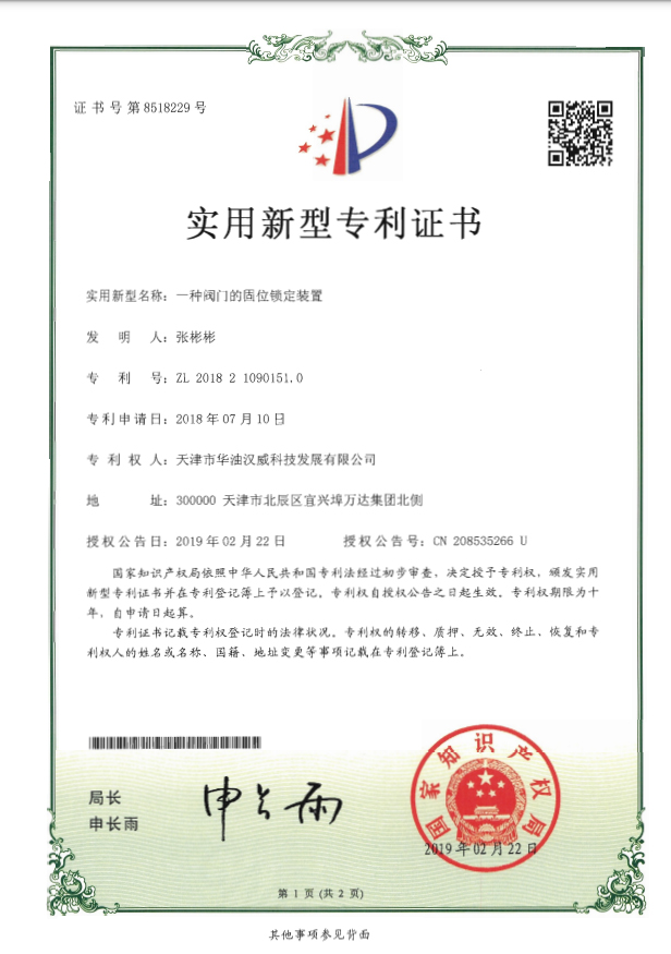 一種閥門的固位鎖定裝置
