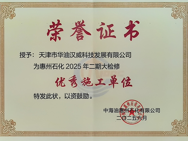 華油漢威榮獲中海油惠州石化2025年二期大檢修“優(yōu)秀施工單位”榮譽(yù)證書(shū)——專(zhuān)業(yè)鑄就品質(zhì),實(shí)力贏得認(rèn)可